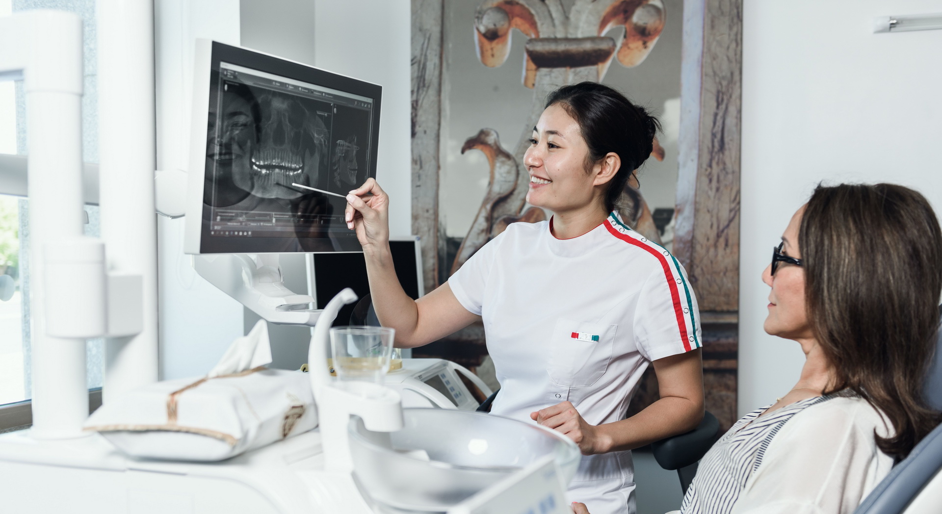 • обследование на 3D томографе «Galileos» и операционный микроскоп OPMI PROergo от Carl Zeiss с моторизованной системой увеличения и фокусировки, позволяют детально видеть, диагностировать и лечить заболевания зубочелюстной системы лечение кариеса без сверления.
